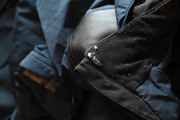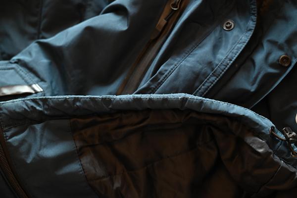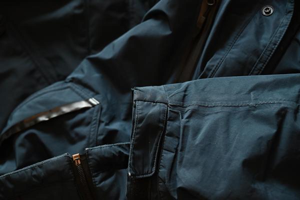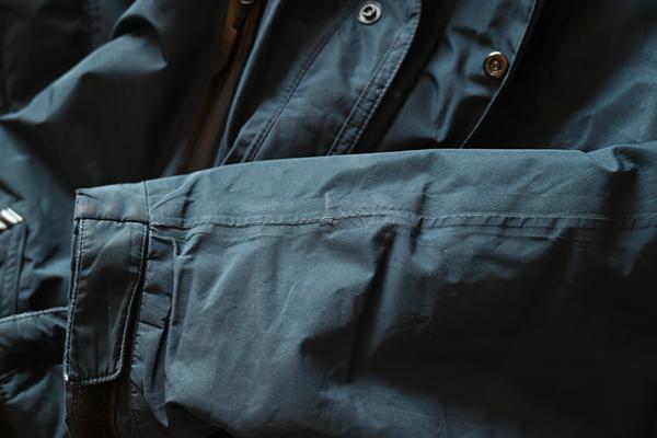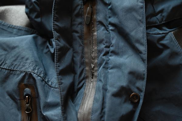防水仕様のチャックなので、首元辺りの立体的なところが剥がれてきます。