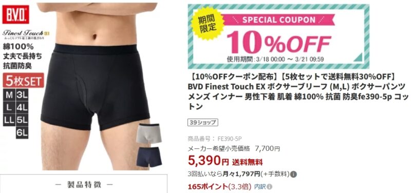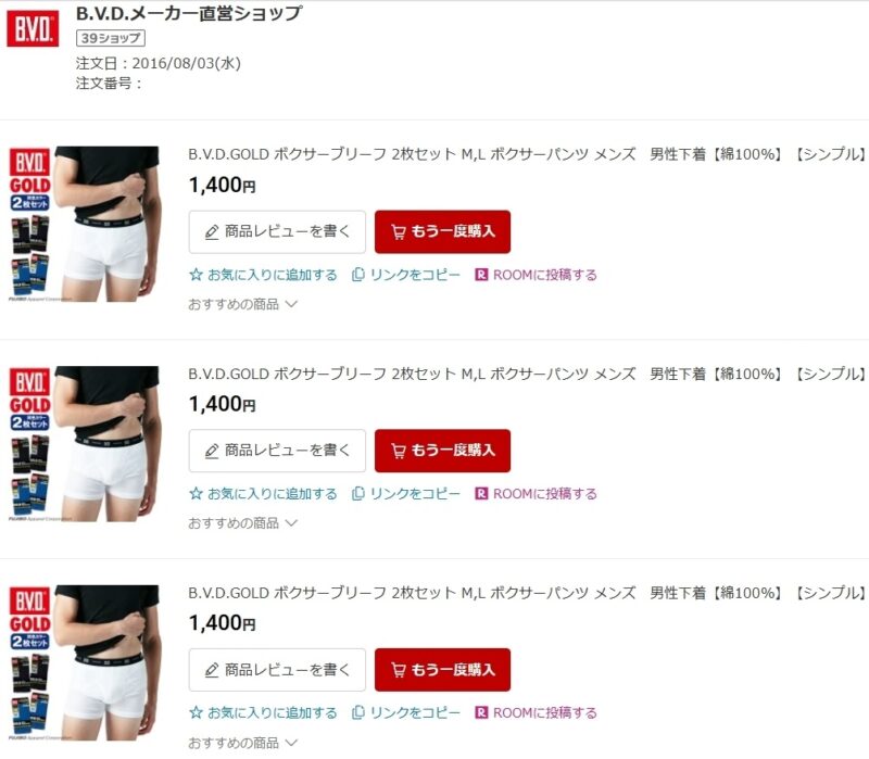 昔はFinest Touch EX ボクサーブリーフの方が高かったのですが、今はBVD GOLDと同じ値段になりました。